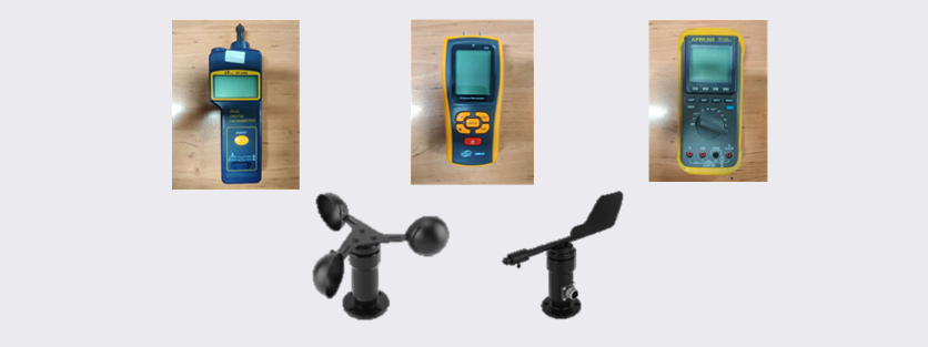 (High-Pressure Compressor, Anemometer, Wind Direction Sensor, Digital Tachometer, Digital Manometer, Newton Meter, Laser, Multimeter, and more).